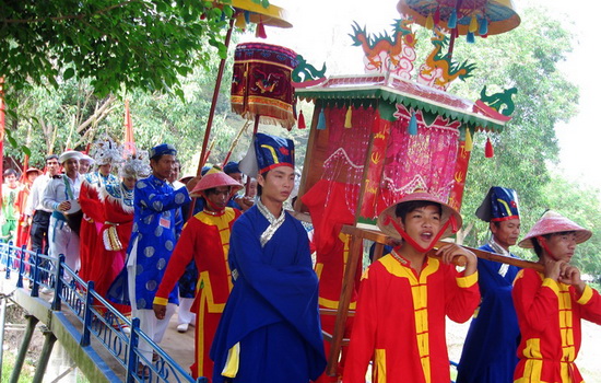 Bên kia suối, tại gian vỏ ca trước đền thờ, nay được ghi là Nhà tưởng niệm Quan lớn Trà Vong, quan khách đã có mặt đông đủ. Vòng ngoài còn có rất đông bà con đến xem lễ cúng chính diễn ra vào lúc 9 giờ. Trống mõ nổi lên. Đoàn rước sắc đã qua cầu tiến sang. Các cụ áo thụng xanh, lọng đỏ tàn vàng… Lính lê, học trò lễ, đào thái mũ mãng xiêm y rực rỡ. Lại có đôi lân múa mở đường. Không gian nghi lễ bừng bừng những âm thanh và màu sắc chói chang. Chiếc cầu cong như chở nặng những niềm vui qua lại đôi bờ con suối.